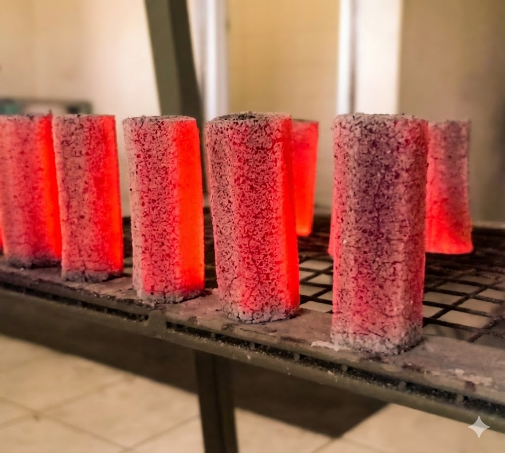 حرارة عالية ومستقرة تدوم لأكثر من ساعتين، مع رماد أبيض نقي بنسبة لا تتجاوز 2.5%.
